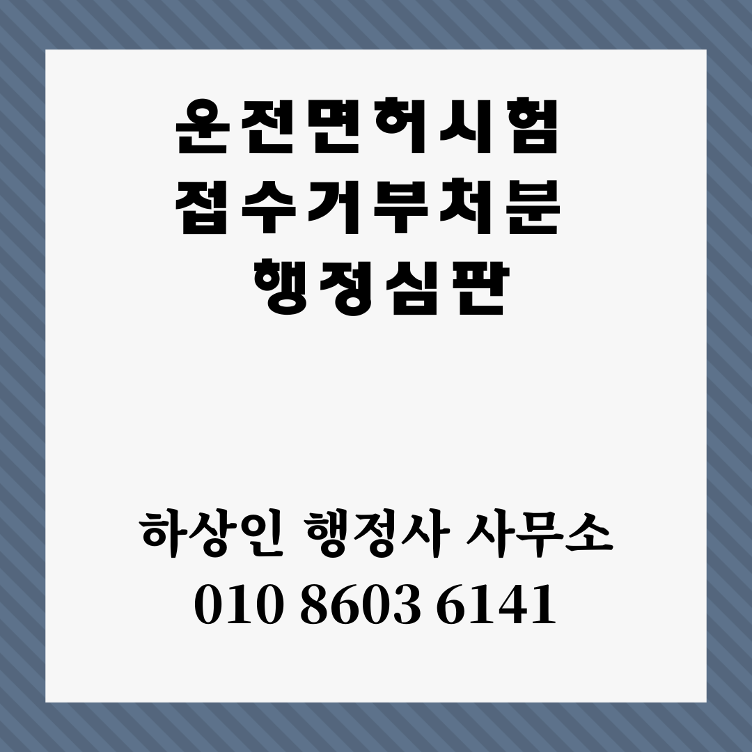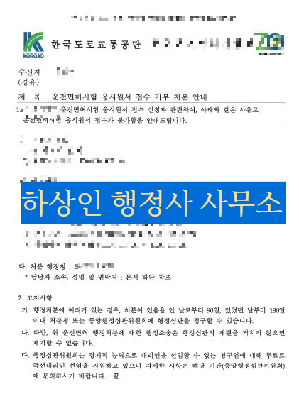 사진 무단 도용 금지 이번에 저희 하상인 행정사 사무소에서는 자동차 운전면허가 개인형 이동장치 음주운전으로 취소되어, 이에 면허취소 처분이 아닌 응시접수 거부 처분을 다투는 행정심판 청구를 진행하게 되었습니다. 도로교통법에 따라 자동차 운전면허 취소 처분 등을 받아 행정심판 청구서 작성 등 문의가 있는 분들께서는 저희 하상인 행정사 사무소로 연락 남겨주시면 되겠습니다.