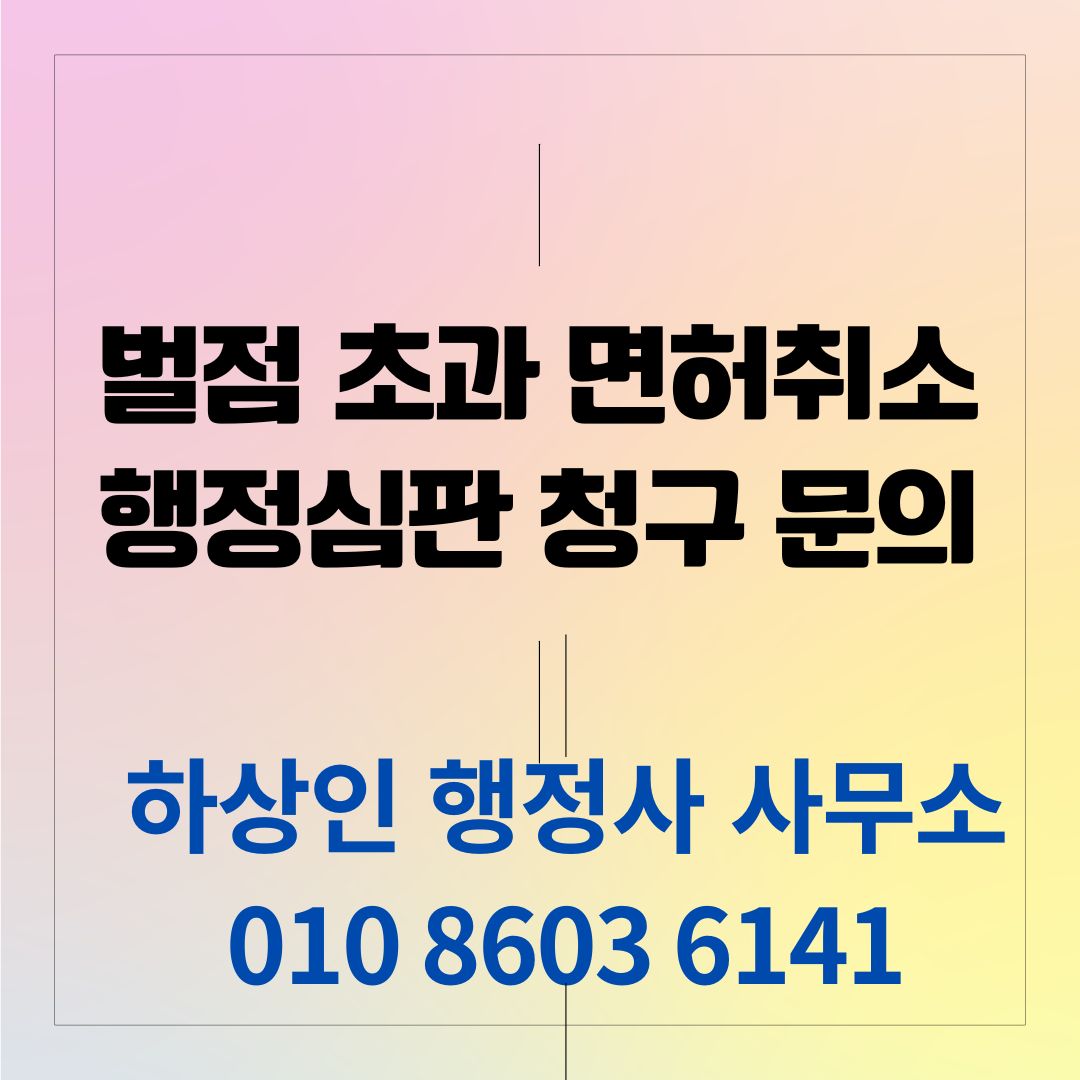 도로교통법 위반으로 벌점을 받아 자동차 운전면허가 취소되어 행정심판 청구서 작성 등 문의가 있는 경우 저희 하상인 행정사 사무소로 연락 남겨주시면 되겠습니다.