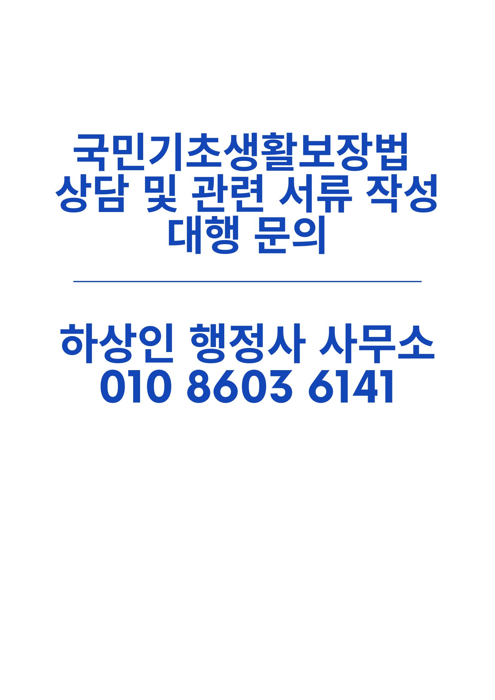 이처럼 행정심판을 청구하기 전엔 자신의 상황이 어떠한지 명확히 분석할 필요가 있고, 그에 따라 청구취지를 작성해야 하겠습니다. 국민기초생활보장법과 관련된 상담이나 서류 작성 대행 문의가 있는 경우 저희 하상인 행정사 사무소로 연락 남겨주시면 되겠습니다.